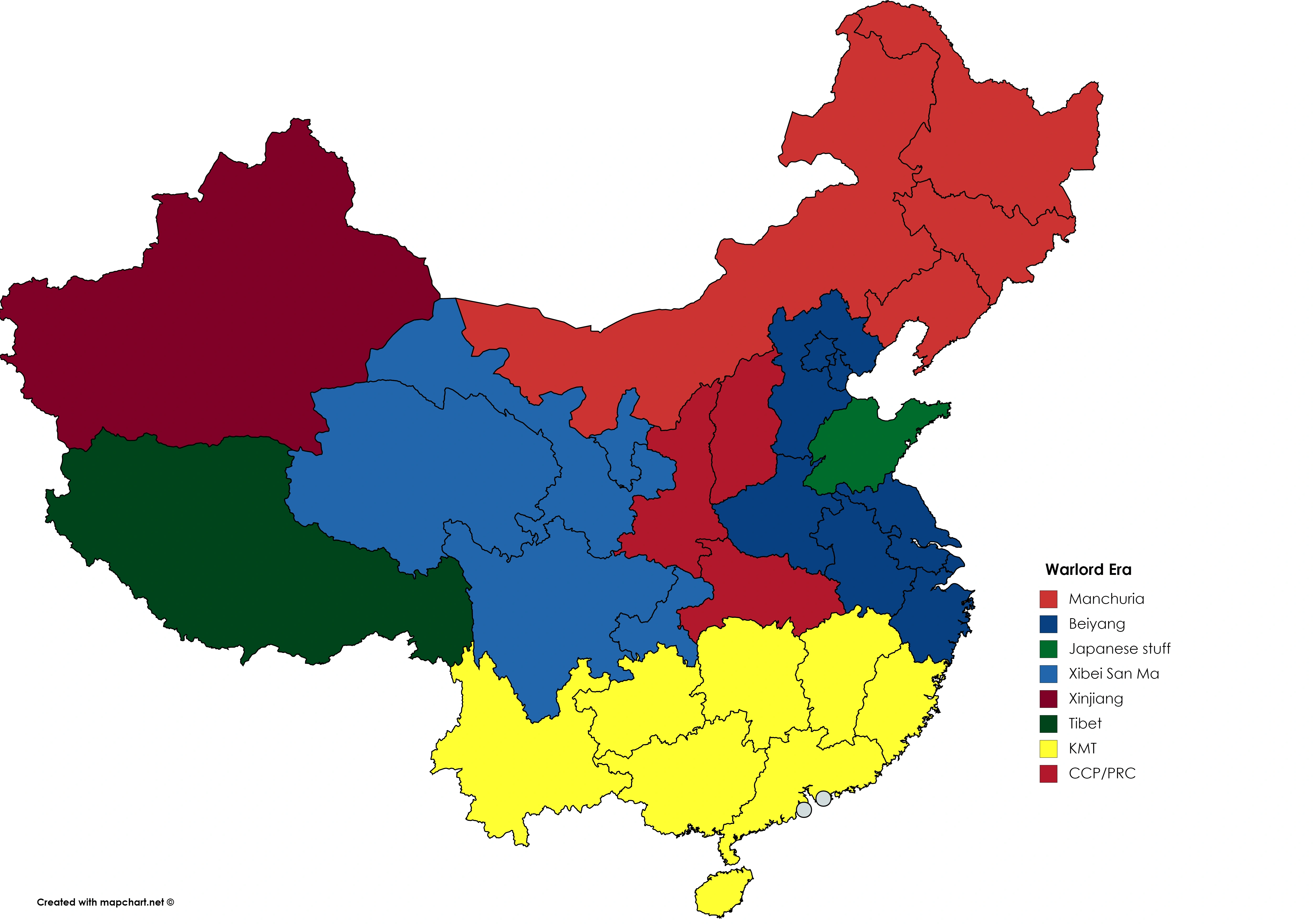 The Qing Dynasty has collapsed, now there is a big warlord era woth a ton of chaos, to the South, the KMT seeks to establish their republic, to the North, the Beiyang government flounders, and to the east and north, Japan and the USSR see great potential in this war who will win? We shall see.