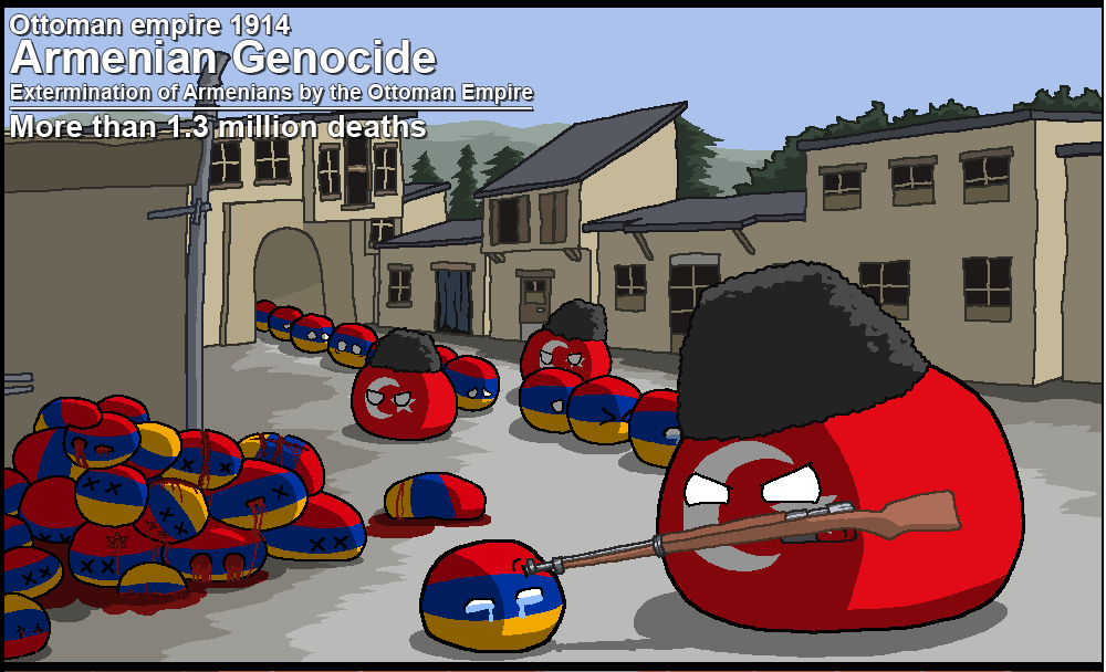 Nowadays, Turkeyball denies that the genocide happened and only some countryballs recognize it as a genocide, as well as many stateballs in USAball. Most of the others avoid mentioning it so that Turkeyball doesn't throw a tantrum, or because he bribed them. Though not involved, Azerbaijanball denies it because of his hatred for Armeniaball. The rest of countryballs neither outright deny it nor accept it.
