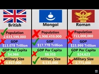 Comparisons what youtuber RealLifeLore estimates will be between the Mongol, British, and Roman Empire if they reunited today. This file is in the public domain -