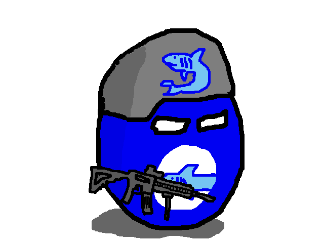 This is my own teamball I made. When I was still in high school, I belonged to a team called Blue Sharks during our annual sports week. Here, I recreated what my team would look like if it were a countryball/faction ball.