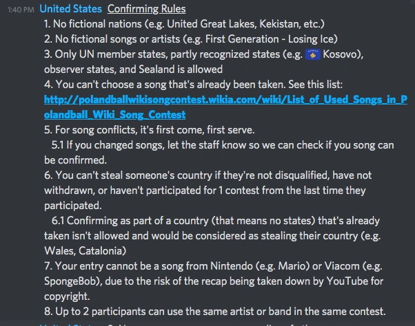 submissions take place for a week, after which voting will begin. to cast your votes, simply put which country's song you most liked in a voting list like this: