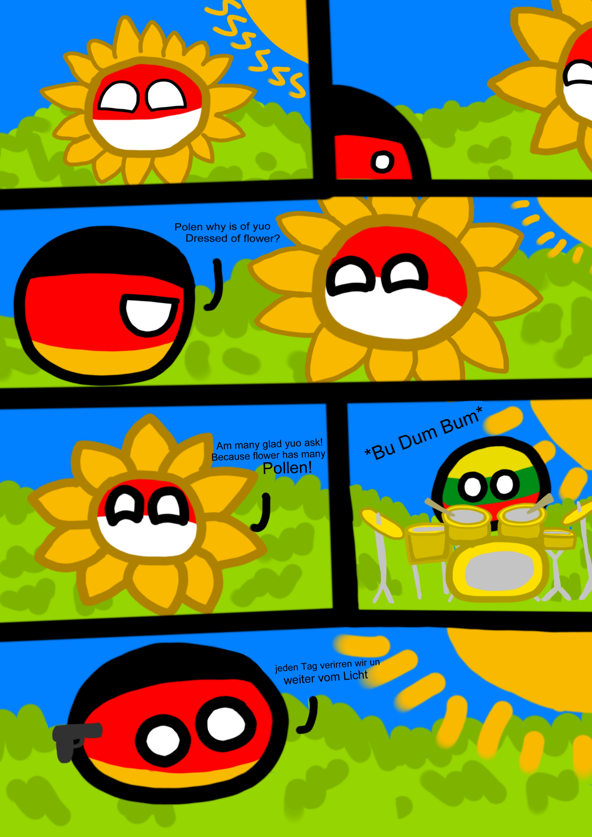 Lithuaniaball did in the other comic and did the *Bu Dum Bum* meanwhile in the background